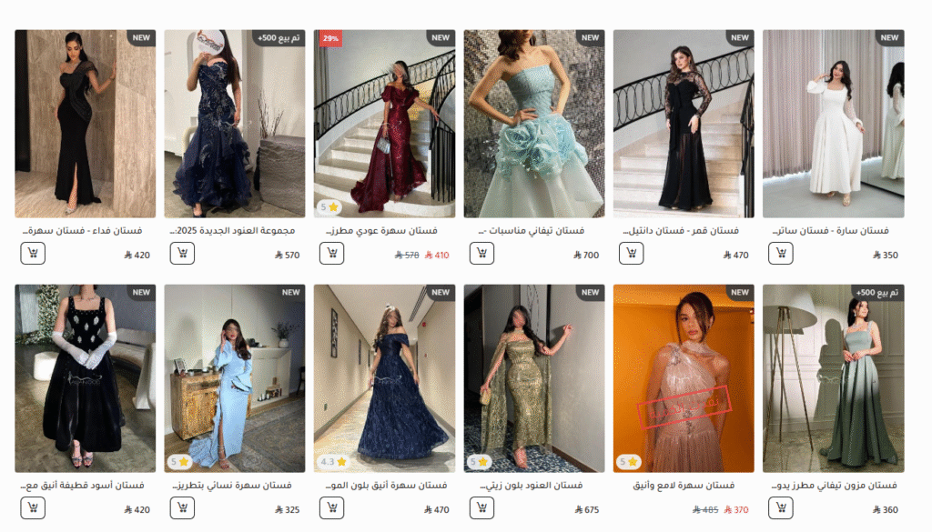 بزيارة موقع العنود للأزياء، يمكنكِ استكشاف مجموعة واسعة من الفساتين النسائية و العبايات والمنتجات الأخرى.